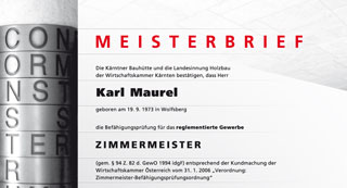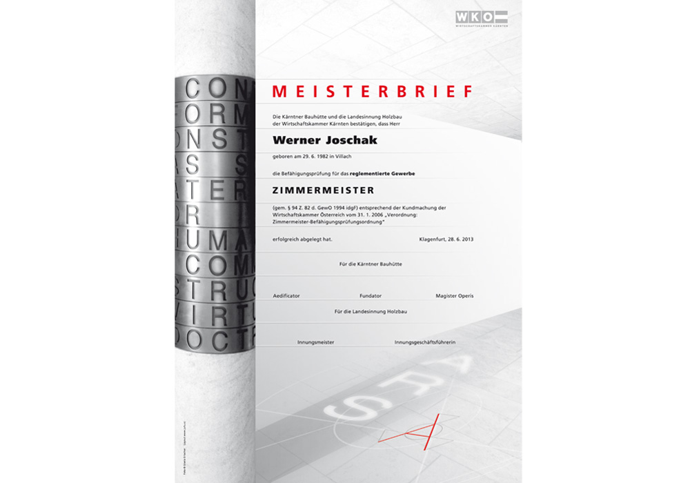 und Layout für Meisterbriefe der Kärntner Bauhütte
